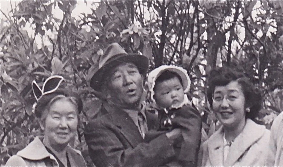 The Noritake children, l-r Yasuko (Donna/Yako), Mieko (Mickey), Tatsumi (Patricia/Pat), Sakae standing above Pat, Yoshito, Suyeo, Koshiro, Tsuyoshi (Tom).